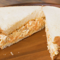 Panini de pollo, pepinillo, zanahoria y queso crema.