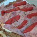 milanesa de pollo con muzza, salsa, Jamon y Morron