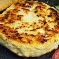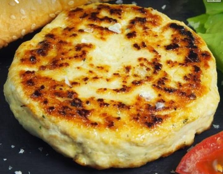 Hamburguesa de pollo con, jamon, queso, lechuga, tomate y huevo con papas fritas