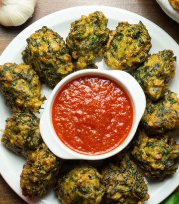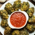 Buñuelos de brócoli con salsa y ensalada