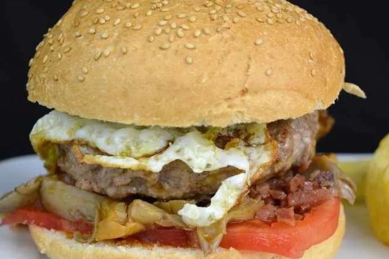 Burguer de Carne x2 completa c/Fritas Jamon-queso-tomate y huevo